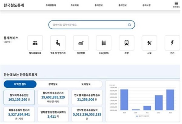 [¾ÆÀ¯°æÁ¦=¹Úâ¿í ±âÀÚ] Çѱ¹Ã¶µµ°ø»ç(ÄÚ·¹ÀÏ)°¡ ±¹³» öµµ °ü·Ã Á¤º¸¸¦ ½±°Ô °Ë»öÇÒ ¼ö ÀÖ´Â ‘Çѱ¹Ã¶µµÅë°è’ ȨÆäÀÌÁö¸¦ ±¸ÃàÇß´Ù.