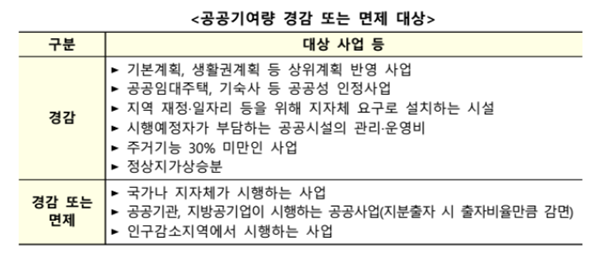 °ø°ø °¨¸é±âÁصµ Á¤Çß´Ù. ¡ãÀÏÀÚ¸®¤ýÀçÁ¤ âÃâ µî °ø°ø¸ñÀû ½ÇÇö »ç¾÷ ¡ã»ç¾÷ÀÚ°¡ ºÎ´ãÇÏ´Â °ø°ø½Ã¼³ µîÀÇ °ü¸®¤ý¿î¿µºñ ¡ãÀú¼öÀͤýºñÁÖ°Å ±â´ÉÁ᫐ °³¹ß ¡ã°èȹº¯°æ°ú ¹«°üÇÑ Áö°¡º¯µ¿ µîÀÇ °æ¿ì ÁöÀÚü°¡ °ø°ø±â¿©·®À» °æ°¨ÇÒ ¼ö ÀÖµµ·Ï Çß´Ù.