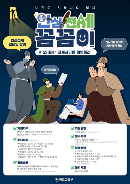 [¾ÆÀ¯°æÁ¦=Á¶¸íÀÇ ±âÀÚ] ÃÖ±Ù ±¹Åä±³ÅëºÎ(Àå°ü ¹Ú»ó¿ì¤ýÀÌÇÏ ±¹ÅäºÎ)´Â ÀÌ´Þ 11ÀϺÎÅÍ Àü¼¼»ç±â ¿¹¹æÀ» À§ÇØ ‘¾È½ÉÀü¼¼ ²Ä²ÄÀÌ’ ´ëÇлý ¼Æ÷ÅÍÁ ¸ðÁýÇÑ´Ù°í ¹àÇû´Ù.