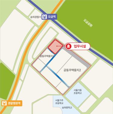 ¼ÛÆÄâÀÇÇõ½ÅÁö±¸ ¾÷¹«½Ã¼³¿ëÁö´Â ¿¾ ¼ºµ¿±¸Ä¡¼Ò ºÎÁö¸¦ °³¹ßÇÑ ÅäÁö ÀϺηÎ, ÀÌ¹Ì È°¼ºÈµÈ ¼¿ï½Ã ¼ÛÆÄ±¸ Á᫐ ¿À±Ý¿ª ÃÊ¿ª¼¼±Ç ÀÔÁö¸¦ °®Ãß°í ÀÖ´Ù. ¹Ý°æ 150m À̳»¿¡ ¼¿ï ÁöÇÏö 3È£¼±¤ý5È£¼±ÀÌ ±³Â÷ÇÏ´Â ¿À±Ý¿ªÀÌ À§Ä¡ÇØ ´ëÁß±³Åë Á¢±Ù¼ºÀÌ ¶Ù¾î³ª¸ç, Àαٿ¡´Â ¼ÛÆÄ°æÂû¼, ¼ÛÆÄ¿ìü±¹ µî ÁÖ¿ä °ø°ø±â°üÀÌ ¹ÐÁýÇØ ÀÖ´Ù.