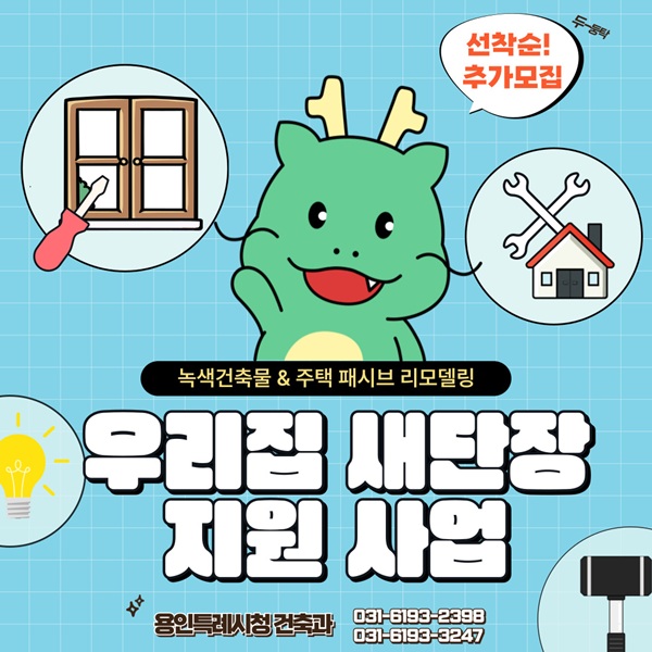 [¾ÆÀ¯°æÁ¦=¿À¼ö¿µ ±âÀÚ] °æ±â ¿ëÀνð¡ ‘¿ì¸®Áý »õ´ÜÀå Áö¿ø»ç¾÷’ ´ë»óÀÚ Ãß°¡ ¸ðÁý¿¡ ³ª¼¹´Ù.