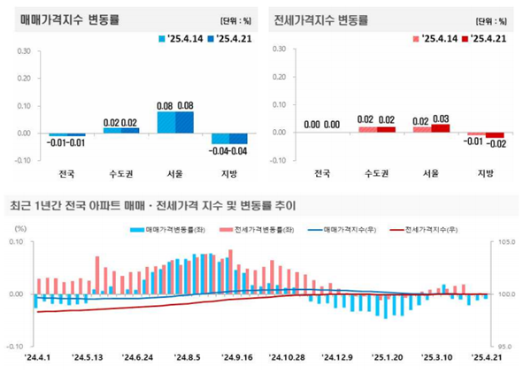 ÇÑÆí, Àü±¹ÀÇ ¾ÆÆÄÆ® Àü¼¼°¡°Ý(0%)Àº ÀüÁÖ °°Àº º¸ÇÕÀ» ±â·ÏÇß°í, ¼¿ï ¾ÆÆÄÆ® Àü¼Â°ª(0.03%)Àº ÀüÁÖ(0.02%) ´ëºñ ´õ »ó½Â¼¼¸¦ º¸ÀÎ »óȲÀÌ´Ù.