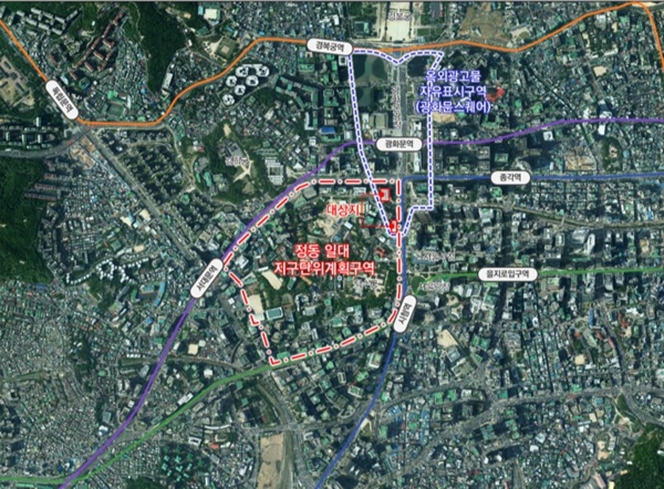 ´ë»óÁö´Â Á¤µ¿ ÀÏ´ë Áö±¸´ÜÀ§°èȹ±¸¿ª ³»¿¡¼ ¿Á¿Ü±¤°í¹° ÀÚÀ¯Ç¥½Ã±¸¿ªÀ¸·Î ÁöÁ¤µÈ ÄÚ¸®¾Æ³ªÈ£ÅÚ°ú µ¿È¸é¼¼Á¡ °Ç¹°ÀÌ´Ù. Áß±¸ Á¤µ¿, ¼¼Ò¹®µ¿, ¼øÈµ¿, Á¾·Î±¸ ½Å¹®·Î1‧2°¡ ÀÏ´ë 5469.2§³¸¦ ´ë»óÀ¸·Î ÇÑ À̰÷Àº Àαٿ¡ ÁöÇÏö 5È£¼± ±¤È¹®¿ª°ú ±¤È¹®±¤Àå, û°èõ µîÀÌ ÀÖ¾î À¯µ¿ Àα¸°¡ ¸¹°í ±¹³»¿Ü °ü±¤°´ÀÌ Áñ°Ü ã´Â °÷ÀÌ´Ù.