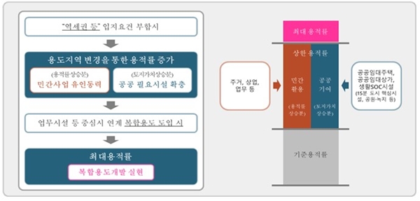 ¿ª¼¼±Ç Ȱ¼ºÈ»ç¾÷ ½Åû ½Ã ¿ª¼¼±Çº° ÁÖ¿ä ±â´ÉÀ» È®º¸Çϰí ÀÔÁö ¿ä°ÇÀ» ÃæÁ·ÇÏ¸é ¿ëµµÁö¿ªÀ» 2´Ü°è·Î »óÇâÇÏ°í ¿ëÀû·ü »óÇâ µîÀÇ Àμ¾Æ¼ºê¸¦ ºÎ¿©ÇÑ´Ù. ¿ª ¿¬Á¢ºÎ¿¡ º¹ÇÕ ¿ëµµ¸¦ µµÀÔÇÒ °æ¿ì ¿ëµµÁö¿ªÀ» Ãß°¡ »óÇâÇÑ´Ù(¹ýÀû»óÇÑ¿ëÀû·ü 1.2¹è ¿ÏÈ).