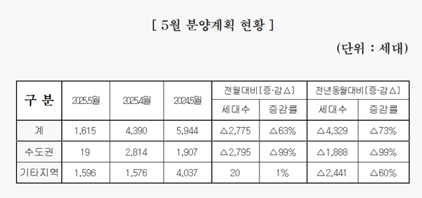 ÀÌ´Â Àü¿ù(4390°¡±¸) ´ëºñ 2775°¡±¸(63%) °¨¼ÒÇßÀ¸¸ç, Àü³â µ¿¿ù(5944°¡±¸)°ú ºñ±³Çϸé 4329°¡±¸(73%)³ª ÁÙ¾îµç ¼öÄ¡´Ù.
