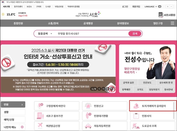 [¾ÆÀ¯°æÁ¦=Á¶¸íÀÇ ±âÀÚ] ¼¿ï ¼Ãʱ¸´Â ÅäÁö°Å·¡Çã°¡Á¦ È®´ë ½ÃÇà¿¡ µû¸¥ ±¸¹Î ºÒÆíÀ» ÇØ¼ÒÇϰíÀÚ ±¸ ´©¸®Áý¿¡ ‘ÅäÁö°Å·¡Çã°¡ ±æ¶óÀâÀÌ’ ½Ã½ºÅÛÀ» ±¸Ãà¤ý¿î¿µÇÑ´Ù°í ÀÌ´Þ 11ÀÏ ¹àÇû´Ù.