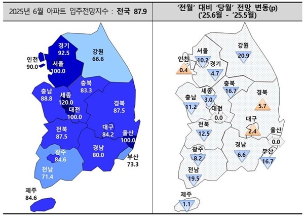 ÃÖ±Ù ÁÖÅûê¾÷¿¬±¸¿ø(ÀÌÇÏ Áֻ꿬)¿¡ µû¸£¸é ÁÖÅûç¾÷ÀÚ¸¦ ´ë»óÀ¸·Î ¼³¹®Á¶»çÇÑ °á°ú ÀÌ´Þ Àü±¹ ¾ÆÆÄÆ® ÀÔÁÖÀü¸ÁÁö¼ö´Â 87.9·Î Àü¿ù(95.1)º¸´Ù 7.2p Ç϶ôÇÑ °ÍÀ¸·Î Á¶»çµÆ´Ù.
