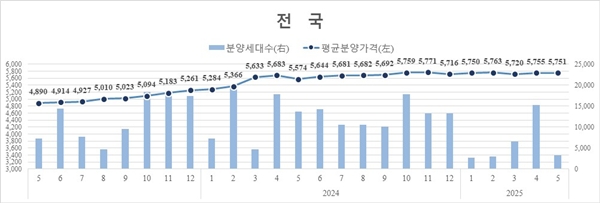 ÁÖÅõµ½Ãº¸Áõ°ø»ç(ÀÌÇÏ HUG)°¡ ¹ßÇ¥ÇÑ ‘¹Î°£¾ÆÆÄÆ® ºÐ¾ç°¡°Ý µ¿Çâ’¿¡ µû¸£¸é Àü±¹ ¹Î°£¾ÆÆÄÆ®ÀÇ ÃÖ±Ù 1³â°£ §³´ç Æò±Õ ºÐ¾ç°¡°Ý(°ø±Þ¸éÀû ±âÁؤýÀÌÇÏ §³´ç Æò±Õ ºÐ¾ç°¡°Ý)Àº ¿ÃÇØ 5¿ù ¸» ±âÁØ 575¸¸1000¿øÀ¸·Î Àü¿ù ´ëºñ 0.08% Ç϶ôÇß´Ù. Àü³â µ¿¿ù(557¸¸4000¿ø) ´ëºñ·Î´Â 3.18% »ó½ÂÇß´Ù.