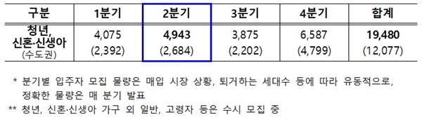 ¸ðÁý ±Ô¸ð´Â û³â 2508°¡±¸, ½ÅÈ¥¤ý½Å»ý¾Æ °¡±¸ 2435°¡±¸ µî ÃÑ 4943°¡±¸´Ù. ½ÅûÀÚ ÀÚ°Ý °ËÁõ µîÀ» °ÅÃÄ À̸£¸é ¿ÃÇØ 9¿ù ¸»ºÎÅÍ ÀÔÁÖÇÒ ¼ö ÀÖ´Ù.