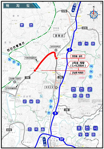 | ¡ã ±¹Áöµµ78È£¼± ¿¬Ãµ ¿Á°è~»ó¸® ±¸°£ µµ·ÎÈ®Àå»ç¾÷ À§Ä¡µµ. <Á¦°ø=°æ±âµµ> |