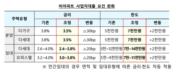±¹ÅäºÎ´Â »ç¾÷ÀÚÀÇ ºÎ´ãÀ» ¿ÏÈÇϰíÀÚ 2027³â ¸»±îÁö ºñ¾ÆÆÄÆ® °Ç¼³ÀÚ±ÝÀÇ ´ëÃâ±Ý¸®¸¦ 20~30bp ÀÎÇÏÇÏ°í ´ëÃâÇѵµ´Â 2000¸¸ ¿ø »óÇâÇÑ´Ù.