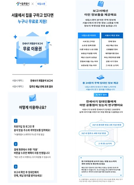 º¸°í¼´Â ‘¼¿ïÁÖ°ÅÆ÷ÅÐ’ ¶Ç´Â ‘û³â¸ù¶¥Á¤º¸Åë’ÀÇ Àü¼¼»ç±â À§ÇèºÐ¼® ¹è³Ê¸¦ ÅëÇØ ¹Î°£ ºÎµ¿»ê ¸®½ºÅ© ºÐ¼® Ç÷§Æû ‘³»Áý½ºÄµ’¿¡ Á¢¼ÓÇÑ µÚ, ½Ã ÄíÆùÀ» ¹ß±Þ¹Þ¾Æ ÀÌ¿ëÇÒ ¼ö ÀÖ´Ù. ¼¿ï Áö¿ª ÀÓ´ëÂ÷°è¾à ¿¹Á¤ÀÚ 1000¸íÀ» ´ë»óÀ¸·Î ¹«·á Á¦°øµÇ¸ç, °è¾àÀ» °í·ÁÇϰí ÀÖ´Â ÁÖÅÃÀÇ ÁÖ¼Ò¸¦ ÀÔ·ÂÇϸé AI°¡ ¼öÁý¤ýºÐ¼®ÇÑ Á¤º¸¸¦ Á¦°ø¹ÞÀ» ¼ö ÀÖ´Ù.