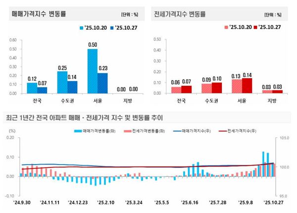 ÇÑÆí, Àü±¹ÀÇ ¾ÆÆÄÆ® Àü¼¼°¡°Ý(0.07%)Àº ÀüÁÖ(0.06%) ´ëºñ ´õ »ó½Â¼¼¸¦ Ű¿ü°í, ¼¿ï ¾ÆÆÄÆ® Àü¼Â°ª(0.14%)µµ ÀüÁÖ(0.13%) ´ëºñ »ó½Â¼¼¸¦ Ű¿î »óȲÀÌ´Ù.