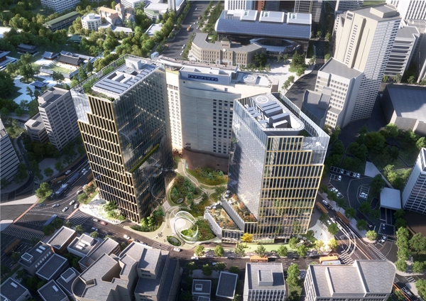 ÇÑȺôµù(¼Ò°ø2Áö±¸)Àº Áß±¸ ¼Ò°ø·Î 109(¼Òµ¿µ¿) ÀÏ¿ø 4030.1§³¸¦ ´ë»óÀ¸·Î °ÇÆóÀ² 56.93%¤ý¿ëÀû·ü 647.98%¸¦ Àû¿ëÇÑ ÁöÇÏ 8Ãþ~Áö»ó 19Ãþ ¾÷¹« ¹× ±Ù¸°»ýȰ½Ã¼³·Î, ÇÑÈ»ý¸í ÅÂÆò·Î»ç¿Á(¼Ò°ø3Áö±¸)´Â Áß±¸ ¼¼Á¾´ë·Î 92(ÅÂÆò·Î2°¡) ÀÏ¿ø 3218.4§³¿¡ °ÇÆóÀ² 59.77%¤ý¿ëÀû·ü 1102.4%¸¦ Àû¿ëÇÑ ÁöÇÏ 8Ãþ~Áö»ó 23Ãþ ¾÷¹« ¹× ±Ù¸°»ýȰ½Ã¼³·Î ¸®¸ðµ¨¸µÇÑ´Ù. ±âÁ¸ Ãþ¼ö´Â ±×´ë·Î À¯ÁöÇÑ Ã¤ ¼öÆòÁõÃàÀ» ÅëÇØ ÇÑȺôµùÀº ¿¬¸éÀû 4¸¸8566.98§³¿¡¼ 5¸¸394.88§³·Î, ÇÑÈ»ý¸í ÅÂÆò·Î»ç¿ÁÀº 5¸¸11.04§³¿¡¼ 5¸¸3710.06§³·Î °¢°¢ È®ÀåÇÑ´Ù.