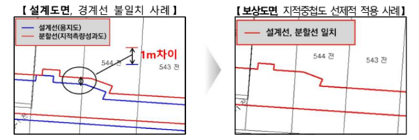 ÀÌ¿¡ ±¹ÅäºÎ´Â °¡À̵å¶óÀÎÀ» ÅëÇØ ½Ç½Ã¼³°è ´Ü°è¿¡¼ ÁöÀûÁßøµµ ÀÛ¼º°ú ¼±ÁöÁ¤ ÁöÀûÇöÈ²Ãø·®À» ½Ç½ÃÅä·Ï Çß´Ù. ¼³°èµµ¸é°ú º¸»óµµ¸é °£ °æ°è¼± Â÷ÀÌÀÇ ¼±Á¦Àû ÇØ¼ÒÇϱâ À§Çؼ´Ù.