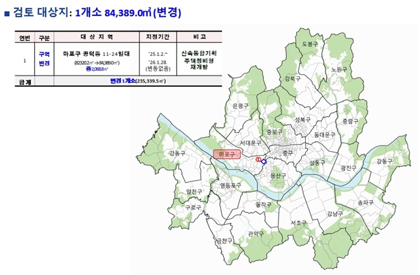 ¾Æ¿ï·¯ ±âÁ¸ ½Å¼ÓÅëÇÕ±âȹ Àç°³¹ß ¼±Á¤Áö 1°÷Àº »ç¾÷±¸¿ª °áÁ¤ °æ°è¿¡ ¸ÂÃç ÅäÁö°Å·¡Çã°¡±¸¿ª °æ°è¸¦ Á¶Á¤Çß´Ù. ´ë»óÁö´Â ¸¶Æ÷±¸ °ø´öµ¿ 11-24 ÀÏ´ë(0.08§´)À̸ç, Çã°¡ ´ë»ó ¸éÀû°ú ÁöÁ¤±â°£Àº ±âÁ¸°ú µ¿ÀÏÇÏ°Ô À¯ÁöµÈ´Ù. ½Ã´Â ÁöÁ¤±â°£ ¸¸·á ½ÃÁ¡ÀÎ 2026³â 1¿ù 28ÀÏ Àü¿¡ ÀçÁöÁ¤ Çʿ伺À» °ËÅäÇÒ °èȹÀÌ´Ù.