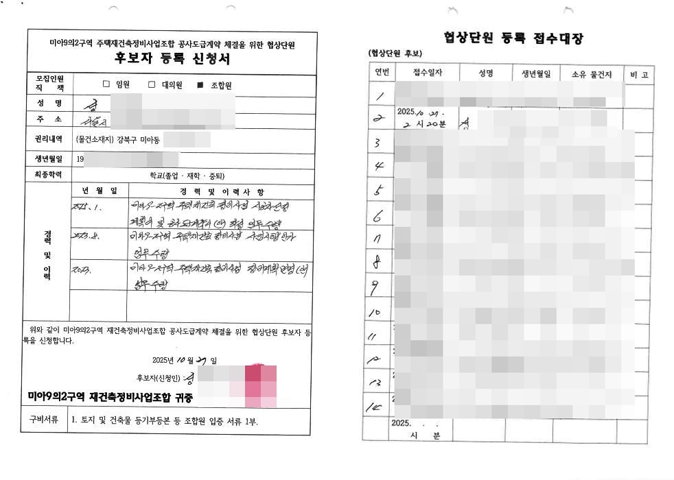 ÃÖ±Ù ¼¿ï °ºÏ±¸ ¹Ì¾Æ9-2±¸¿ª Àç°ÇÃà»ç¾÷ÀÌ ´ÙÀ½ ´Þ(12¿ù) ÀÓ½ÃÃÑȸ¸¦ ¾ÕµÎ°í ÀϺΠÁ¶ÇÕ¿øµéÀÇ ¿ì·Á¿Í ºÒ¸¸ÀÌ ½ñ¾ÆÁö°í ÀÖ´Ù°í ÀüÇØÁ³´Ù. À̹ø ÃÑȸÀÇ ÀïÁ¡Àº ¡ã»õ Á¶ÇÕÀå ¼±°Å ¡ã½Ã°øÀÚ °ø»çµµ±Þ°è¾à ü°áÀ» À§ÇÑ Çù»ó´Ü¿ø ¼±ÀÓ µî ¾È°ÇÀ¸·Î ÆÄ¾ÇµÆ´Âµ¥ ÇØ´ç Áغñ °úÁ¤¿¡ ¹®Á¦ ¼ÒÁö°¡ ÀÖ´Ù´Â °Ô ÀϺΠÁ¶ÇÕ¿øµéÀÇ ÁÖÀåÀ¸·Î ¾Ë·ÁÁ³´Ù.