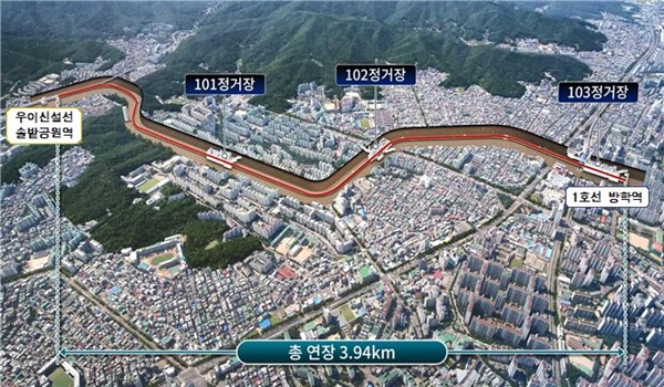 ¿ìÀ̽ż³ ¿¬Àå¼±Àº 2017³âºÎÅÍ ¿î¿µ ÁßÀÎ ¿ìÀ̽ż³¼± ¼Ö¹ç°ø¿ø°ú ÁöÇÏö 1È£¼± ¹æÇпªÀ» ¿¬°áÇÏ´Â »ç¾÷À¸·Î, ÃÑ¿¬Àå 3.94§° ±¸°£¿¡ Á¤°ÅÀå 3°³¼Ò(¹æÇпª ȯ½Â Æ÷ÇÔ)¸¦ ½Å¼³ÇÑ´Ù. ÃÑ»ç¾÷ºñ´Â 4690¾ï ¿øÀ¸·Î 2032³â ÁذøÀÌ ¸ñÇ¥´Ù.