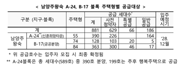 | ¡ã ³²¾çÁÖ¿Õ¼÷ A-24¤ýB-17ºí·Ï ÁÖÅÃÇüº° °ø±Þ ´ë»ó. <Á¦°ø=±¹Åä±³ÅëºÎ> |