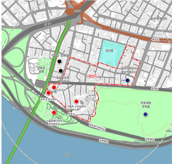 ±âÁ¸ °¡·Î´Â ÃÖ´ëÇÑ »ì¸®µÇ »ó°¡¿¡ °¡·Î Ȱ¼ºÈ ½Ã¼³À» Ãß°¡ ¼³Ä¡ÇØ ¸¶Æ÷ÇÏ´Ã±æ µî ÇÕÁ¤µ¿¿¡ ¾î¿ï¸®´Â Ä¿¹Â´ÏƼ °¡·Î¸¦ Á¶¼ºÇÑ´Ù. °¡·Î±¸¿ª ³»ºÎ¿¡´Â ÃæºÐÇÑ ±Ô¸ðÀÇ °øµ¿ÁÖÅà ´ÜÁö¿Í °ø°ø°øÁö(2323§³) µî Á¤ºñ±â¹Ý½Ã¼³À» ¼³Ä¡Åä·Ï Çß´Ù. ƯÈ÷ ÀýµÎ»ê ¼ºÁö¿Í ÀÎÁ¢ÇÑ ¿ª»ç¹®Èȯ°æº¸È£±¸¿ª ³»¿¡ À§Ä¡ÇØ ³ôÀÌ Á¦ÇÑ µî ±ÔÁ¦·Î °³¹ßÀÌ ¾î·Á¿ü´ø ÀúÃþ ÁÖ°ÅÁö±îÁö Áߤý°íÃþ °øµ¿ÁÖÅà °èȹÀÌ °¡´ÉÇØÁ³´Ù.