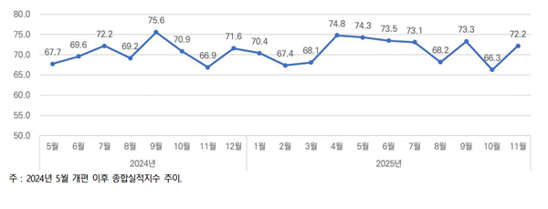¿ÃÇØ 12¿ù Àü¸ÁÁö¼ö´Â Áö³ 11¿ù ½ÇÀûÁö¼öº¸´Ù 0.7p ³ôÀº 72.9·Î Á¶»çµÆ´Ù.