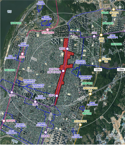 °µ¿±¸ ¾çÀç´ë·Î 1488(±æµ¿) ÀÏ¿ø ¸éÀû 35¸¸9716.7§³ÀÇ ´ë»óÁö´Â °µ¿±¸ÀÇ ÀÏ»ó»ýȰ Á᫐ °Å¸®ÀÌÀÚ ³²¤ýºÏÀ» ¿¬°áÇÏ´Â Áß½ÉÃàÀÎ ¾çÀç´ë·Î ÀÏ´ë·Î, ÁöÇÏö 5È£¼±ÀÎ ±æµ¿¿ª¤ý±ÁÀº´Ù¸®¿ª¤ý¸íÀÏ¿ªÀ» Æ÷ÇÔÇÑ ¿ª¼¼±Ç ±¸°£ÀÌ ÇØ´çµÈ´Ù. ¾çÀç´ë·Îº¯¿¡´Â »ó¾÷¤ý±Ù¸°»ýȰ½Ã¼³ÀÌ ÁÖ·Î ¹èÄ¡µÇ°í À̸éºÎ¿¡´Â ÀúÃþ ÁÖ°ÅÁö°¡ ºÐÆ÷Çϰí ÀÖ´Ù.