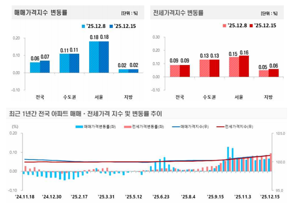 [¾ÆÀ¯°æÁ¦=±ÇÇýÁø ±âÀÚ] ÃÖ±Ù Çѱ¹ºÎµ¿»ê¿øÀÌ ¹ßÇ¥ÇÑ ‘ÁÖ°£¾ÆÆÄÆ® °¡°Ýµ¿Çâ’¿¡ µû¸£¸é 2025³â 12¿ù 3ÁÖ(Áö³ 15ÀÏ ±âÁØ) Àü±¹ ¾ÆÆÄÆ®°ªÀº »ó½Â(0.07%)À» ±â·ÏÇß´Ù. ¼öµµ±Ç°ú ¼¿ï, Áö¹æ ¸ðµÎ »ó½ÂÇß´Ù.