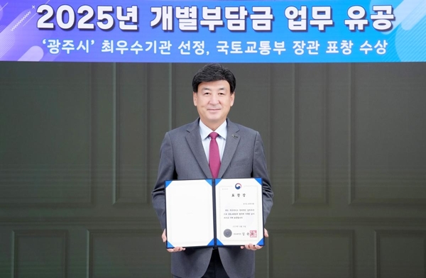 | ¡ã °æ±â ±¤Áֽô ÃÖ±Ù 2025³â °³¹ßºÎ´ã±Ý ºÎ°ú¤ý¡¼ö ¾÷¹« À¯°ø ÃÖ¿ì¼ö±â°üÀ¸·Î ¼±Á¤µÅ ±¹ÅäºÎÀå°ü ǥâÀ» ¹Þ¾Ò´Ù. <Á¦°ø=±¤ÁÖ½Ã> |