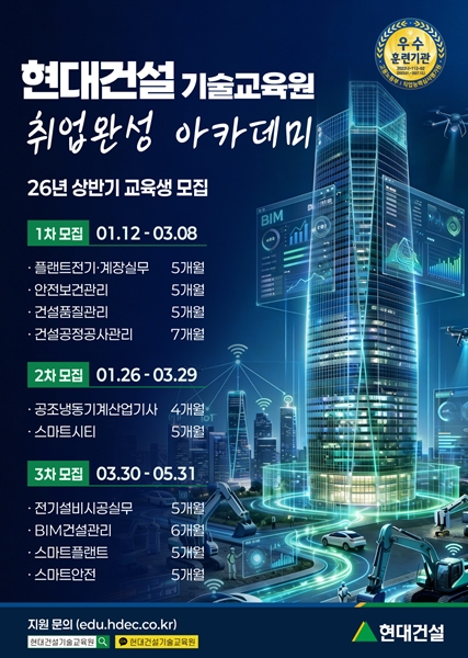 [¾ÆÀ¯°æÁ¦=Á¶¸íÀÇ ±âÀÚ] Çö´ë°Ç¼³ ±â¼ú±³À°¿øÀº °Ç¼³»ê¾÷ Çõ½ÅÀÎÀç ¾ç¼ºÀ» À§ÇÑ ‘2026³â »ó¹Ý±â Ãë¾÷¿Ï¼º ¾ÆÄ«µ¥¹Ì’ ±â¼ú±³À°»ýÀ» ¸ðÁýÇÑ´Ù°í ÃÖ±Ù ¹àÇû´Ù.