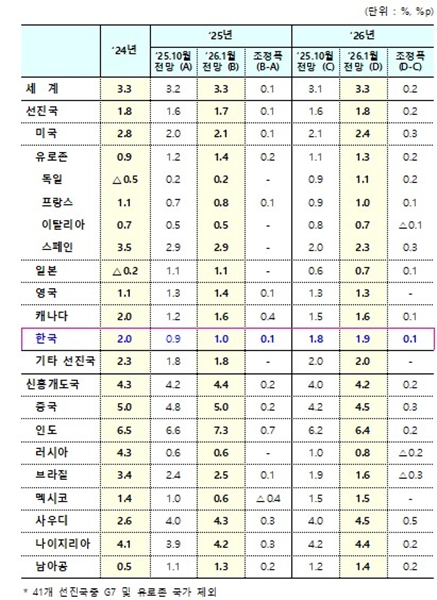 ¼±Áø±¹ ±×·ì(Çѱ¹¤ý¹Ì±¹¤ý¿µ±¹¤ýµ¶ÀϤýÇÁ¶û½º¤ýÀϺ» µî 41°³±¹)ÀÇ 2025³â ¼ºÀå·üÀº Áö³ Àü¸Á ´ëºñ 0.1%p »óÇâµÈ 1.7%·Î ¼öÁ¤ÇßÀ¸¸ç, 2026³â ¼ºÀå·üÀº 0.2%p »óÇâÇÑ 1.8%·Î ¿¹ÃøÇß´Ù.