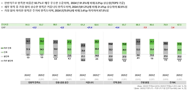 ¼¼ºÎ Ç׸ñº°·Î º¸¸é Ä¿¹Â´ÏƼ ¸¸Á·µµ°¡ 2024³â 61.2%¿¡¼ Áö³ÇØ 82.6%·Î 21.4%p »ó½ÂÇÏ¸ç °¡Àå Å« ÆøÀÇ °³¼±À» º¸¿´´Ù. ¹Ý¸é Áְźñ ¸¸Á·µµ´Â 2024³â 70.9%¿¡¼ Áö³ÇØ 67.5%·Î 3.4%p Ç϶ôÇØ °³¼±ÀÌ ÇÊ¿äÇÑ ¿µ¿ªÀ¸·Î ³ªÅ¸³µ´Ù. ÀÌ¿¡ ½Ã´Â Ä¿¹Â´ÏƼ¤ý¿î¿µ °³¼± ¼º°ú¸¦ È®»êÇÏ´Â µ¿½Ã¿¡ Áְźñ ü°¨ ºÎ´ãÀ» ³·Ãß´Â Á¦µµ¤ý¿î¿µ º¸¿ÏÀ» Áö¼Ó ÃßÁøÇÒ ¹æÄ§ÀÌ´Ù.