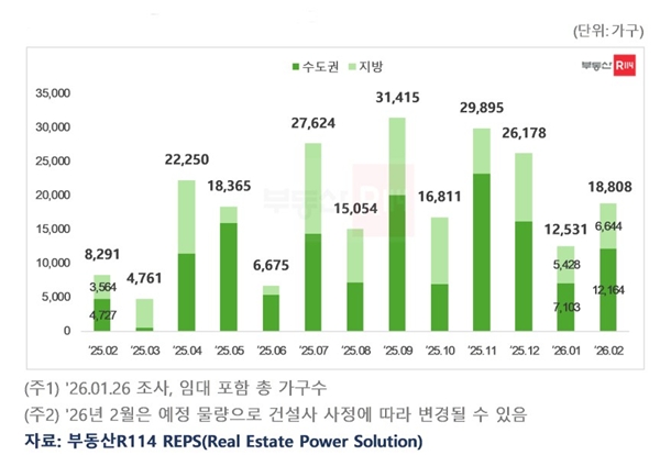 ÃÖ±Ù ºÎµ¿»êR114¿¡ µû¸£¸é ¿ÃÇØ 2¿ù Àü±¹ ¾ÆÆÄÆ® 19°³ ´ÜÁö ÃÑ 1¸¸8808°¡±¸(ÀÓ´ë Æ÷ÇÔ)°¡ ºÐ¾çÀ» °³½ÃÇÑ´Ù. ÀÌ´Â Àü³â µ¿±â(8291°¡±¸) ´ëºñ 226.8%, Àü¿ù(1¸¸2531°¡±¸) ´ëºñ 150.1% Áõ°¡ÇÑ ¼öÄ¡´Ù.