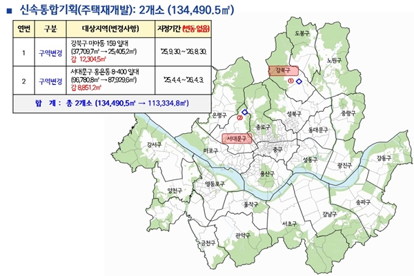 ¾Æ¿ï·¯ ½Ã´Â ½Å¼ÓÅëÇÕ±âȹ Àç°³¹ß ´ë»óÁöÀÎ °ºÏ±¸ ¹Ì¾Æµ¿ 159 ÀÏ´ë(2¸¸5405.2§³)¿Í ¼´ë¹®±¸ È«Àºµ¿ 8-400 ÀÏ´ë(8¸¸7929.6§³) ÅäÁö°Å·¡Çã°¡±¸¿ªÀ» Á¶Á¤Çß´Ù. ±¸¿ª°è º¯°æÀ¸·Î Á¦Ã´µÈ ÅäÁö¸¦ Á¦¿ÜÇßÀ¸¸ç, µÎ ±¸¿ªÀÇ ÁöÁ¤±â°£Àº ±âÁ¸°ú µ¿ÀÏÇÏ°Ô À¯ÁöµÈ´Ù.