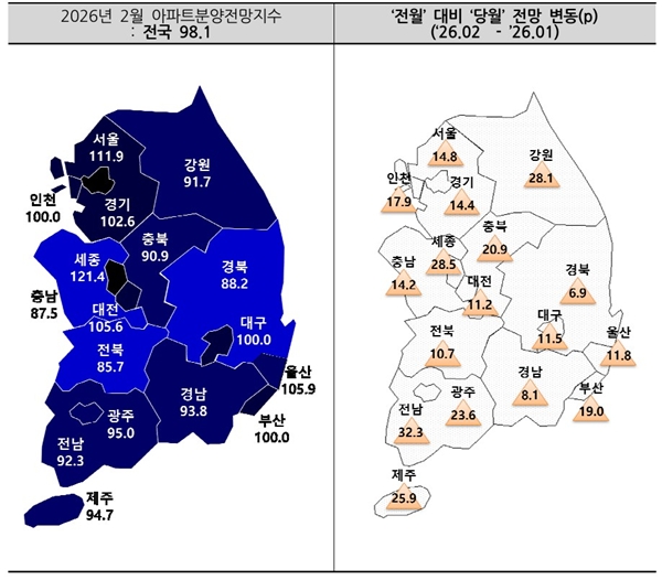 ÃÖ±Ù ÁÖÅûê¾÷¿¬±¸¿ø(ÀÌÇÏ Áֻ꿬)ÀÌ ÁÖÅûç¾÷ÀÚ¸¦ ´ë»óÀ¸·Î ¼³¹®Á¶»çÇÑ °á°ú ÀÌ´Þ ¾ÆÆÄÆ® ºÐ¾çÀü¸ÁÁö¼ö´Â Àü±¹ Æò±Õ 17.7p »ó½ÂÇÑ 98.1·Î Áý°èµÆ´Ù. Àü¸ÁÁö¼ö°¡ 100À» ÃʰúÇÏ¸é ºÐ¾ç Àü¸ÁÀÌ ±àÁ¤Àû, 100 ¹Ì¸¸ÀÌ¸é ºÎÁ¤ÀûÀ̶ó´Â Àǹ̴Ù.