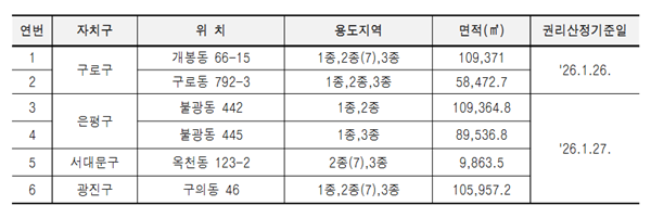 ¼±Á¤µÈ Áö¿ªÀº ¡ã±¸·Î±¸ °³ºÀµ¿ 66-159 ÀÏ´ë¤ý±¸·Îµ¿ 792-3 ÀÏ´ë ¡ãÀºÆò±¸ ºÒ±¤µ¿ 442¤ý445 ÀÏ´ë ¡ã¼´ë¹®±¸ ¿Áõµ¿ 123-2 ÀÏ´ë ¡ã±¤Áø±¸ ±¸Àǵ¿ 46 ÀÏ´ë µîÀÌ´Ù. ÀÌ·Î½á ½Ã ½Å¼ÓÅëÇÕ±âȹ Àç°³¹ß Èĺ¸Áö´Â ÃÑ 154°÷À¸·Î ´Ã¾î³µ´Ù.