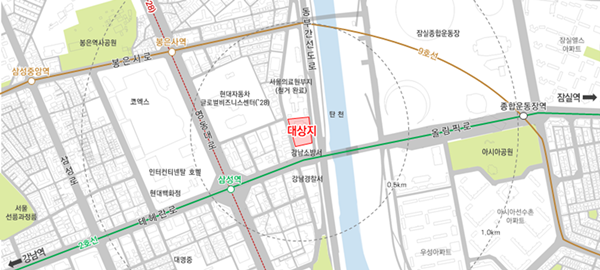 ´ë»óÁö´Â »ï¼ºµ¿ 171-2 ÀÏ¿ø¿¡ À§Ä¡ÇÑ ¿¾ Çѱ¹°¨Á¤¿ø ºÎÁö·Î, ±¹Á¦±³·ùº¹ÇÕÁö±¸ Á߽ɺο¡ ÀÚ¸®Çϰí ÀÖ´Ù.