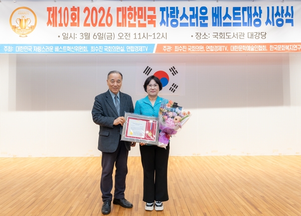 [¾ÆÀ¯°æÁ¦=Á¶Çö¿ì ±âÀÚ] °³²±¸ÀÇȸ ³ë¾ÖÀÚ ÀÇ¿ø(±¹¹ÎÀÇÈû)Àº Áö³ 6ÀÏ ±¹È¸µµ¼°ü ´ë°´ç¿¡¼ ¿¸° ‘Á¦10ȸ 2026 ´ëÇѹα¹ ÀÚ¶û½º·¯¿î º£½ºÆ®´ë»ó’ ½Ã»ó½Ä¿¡¼ ÀÇÁ¤ ºÎ¹® ´ë»óÀÇ ¿µ¿¹¸¦ ¾È¾Ò´Ù.