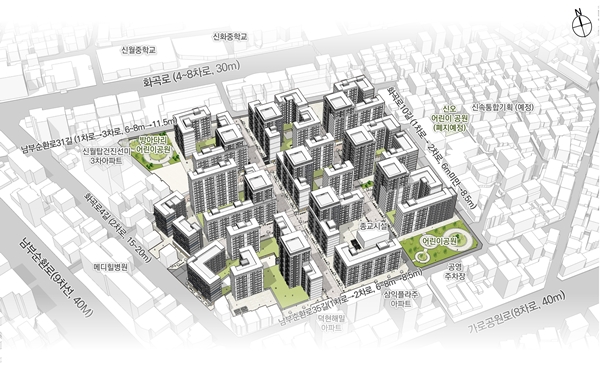 LH´Â ÇØ´ç ±¸¿ª°ú ÀÎÁ¢ÇÑ ½Å¿ù5µ¿ 72 ÀÏ´ë Àç°³¹ß ±¸¿ªÀ» ¿¬°èÇØ µ¿¼ ¹æÇâ °ø°ø ÅëÇà·Î¸¦ °èȹÇϰí, ÅëÇà·Î ÁÖº¯À¸·Î µ¹º½½Ã¼³, °í·ÉÀÚ ½Ã¼³ µî Ä¿¹Â´ÏƼ½Ã¼³À» Á¶¼ºÇØ Áö¿ª Áֹο¡ °³¹æÇÒ °èȹÀÌ´Ù. »ç¾÷Áö ³» ¾î¸°À̰ø¿ø ¸éÀûÀ» ±âÁ¸ 1°÷(937§³)¿¡¼ 2°÷(4262§³)·Î È®´ëÇØ »ýȰ ±â¹Ý ½Ã¼³µµ È®ÃæÇÑ´Ù.