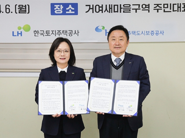 | ¡ã ÀÌ´Þ 6ÀÏ °Å¿©»õ¸¶À»±¸¿ª ÁֹδëǥȸÀÇ »ç¹«½Ç¿¡¼ ÁøÇàµÈ LH¿Í HUGÀÇ ‘°ø°øÁÖµµ ÁÖÅðø±Þ ½Å¼Ó È®´ë¸¦ À§ÇÑ ±âº»Çù¾à’ ü°á½Ä. <Á¦°ø=LH> |