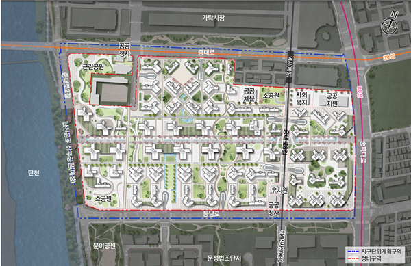 ´ÜÁö ¼Ãø°ú Á¢ÇÏ°Ô Á¶¼ºµÉ ¿¹Á¤ÀΠźõµ¿·Î »óºÎ µ¤°³°ø¿ø(2029³â Áذø ¿¹Á¤)°ú ¿¬°áµÇµµ·Ï ºÏÃø½£³»°ø¿øÀ» È®ÀåÇϰí, ³²ÃøÀ¸·Î ¼Ò°ø¿øÀ» »õ·Ó°Ô Á¶¼ºÇØ Áö¿ª ÁÖ¹ÎÀÇ ÈÞ½Ä °ø°£À¸·Î Á¦°øÇÑ´Ù. ³²Ãø ¹®Á¤¹ýÁ¶´ÜÁö¿¡¼ °¡¿øÃʵîÇб³·Î ÅëÇÐÇÏ´Â ÇлýµéÀÇ ¾ÈÀüÇÑ ÅëÇзθ¦ Á¦°øÇϱâ À§ÇØ °ø°øº¸ÇàÅë·Îµµ ½Å¼³ÇÑ´Ù.